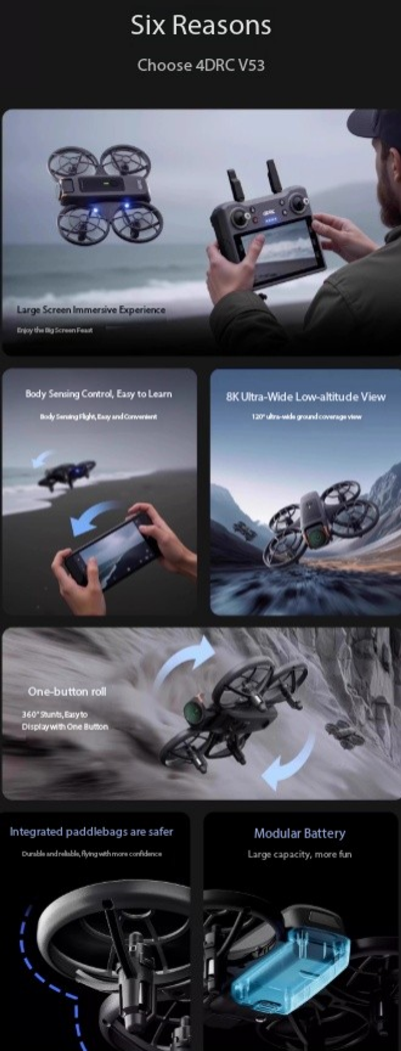 Dron 4DRC V53 con control remoto para evitar obstáculos y pantalla para fotografía aérea profesional