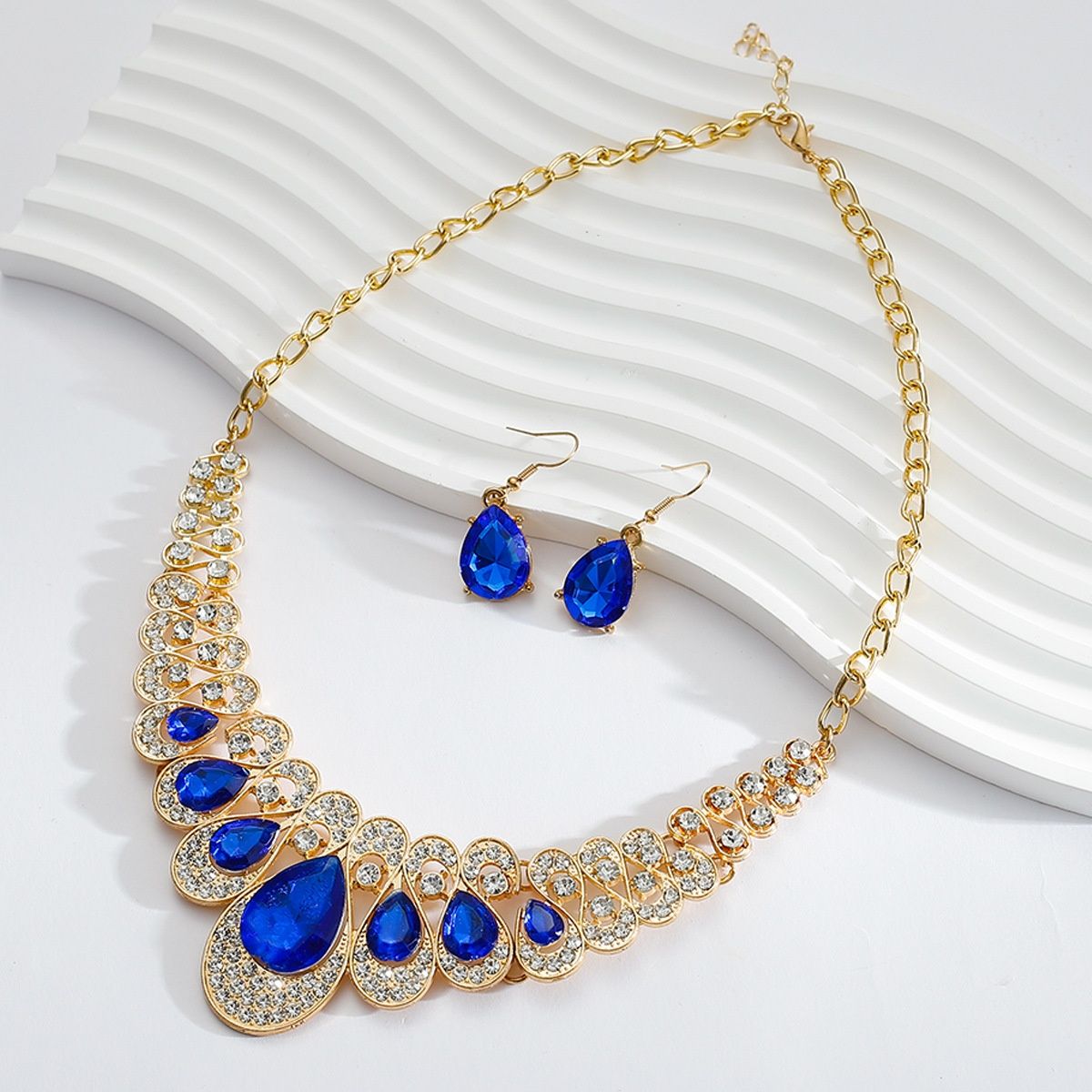 Large gemstone necklace and earrings set European and American exaggerated temperament fashion sparkling diamond