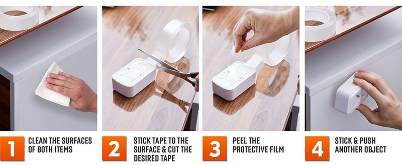 First, clean the surface. Then, cut the right size of the tap using scissors or knife. Peel off the protective film and stick the tape on the item. If you would like to reuse the tape, remove it from the surface and wash the glue off. Dry it naturally and use only after it dries