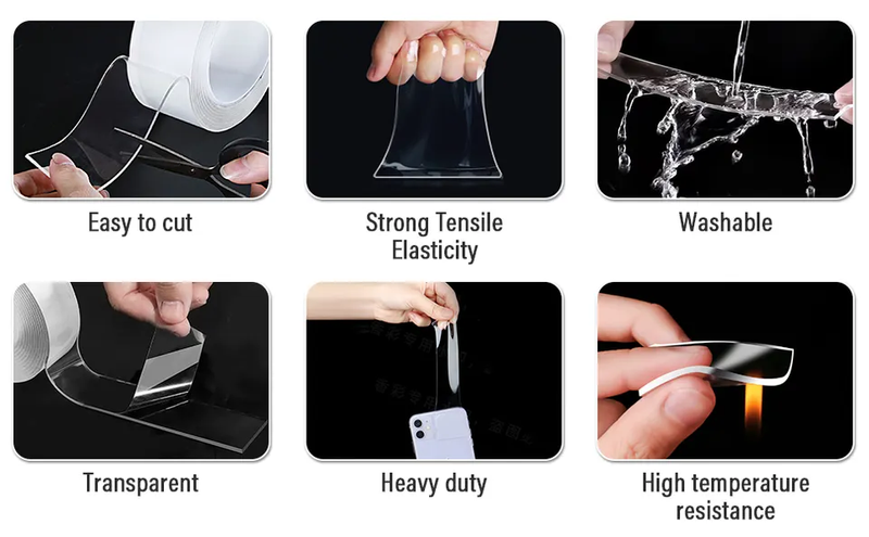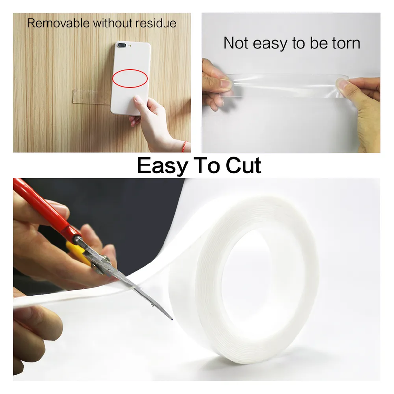 This double-sided nano-tape can solve your problem. It is extremely sticky and will not damage the attached surface. Double-sided nano heavy-duty tape can replace traditional fixing methods such as screws and electric welding that destroy the wall. Nano tapes are easy to use and can be used in homes, offices, kitchens and bathrooms, and even cars. Suitable for fixing posters, carpets, pictures, pen holders, hooks, wall decorations, etc.